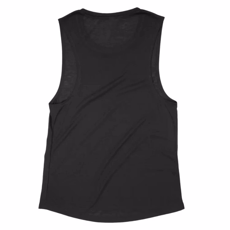 Linne i retro vintage svart, med grafiskt screentryck på en 70-tals retro regnbåge i snygga färger. Tryckt på supermjuk, 100 % kammad ekologisk bomull. Ett smickrande och vackert snitt, men moderna öppnare armhålor. Supercool!