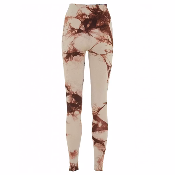 Utöka din garderob med denna bohemiska yogabyxa i snyggt batikmönster. Dessa leggings har en supermjuk och seamless känsla mot kroppen och kommer i en mörkare beige/sandfärg med vinrött/mörkbrunt batikmönster.