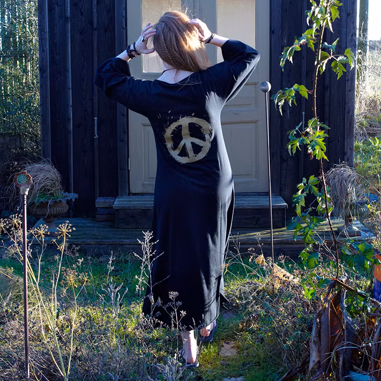 Ekologisk klänning/kaftan Peace black Limited Edition - Santa Ni