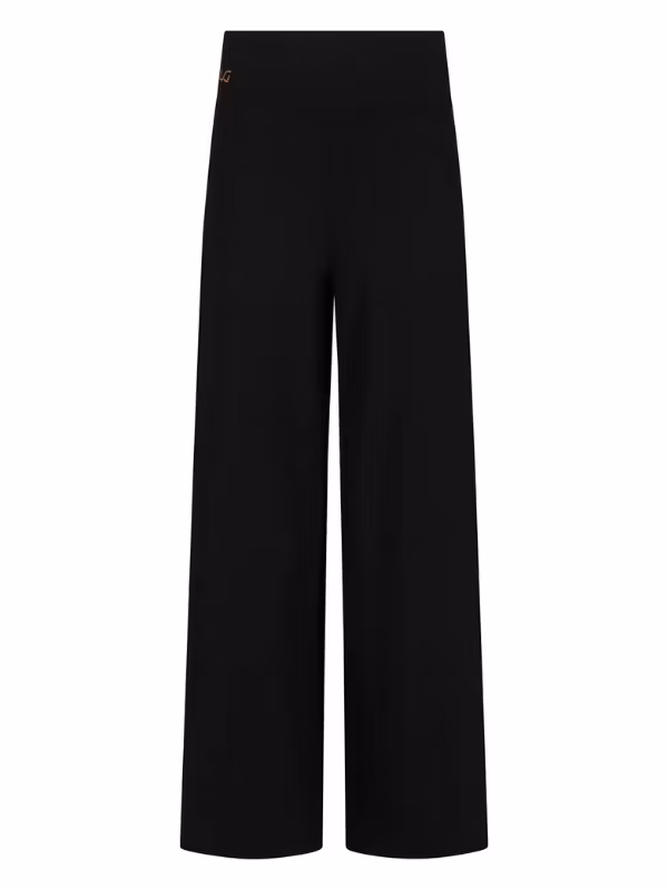 Den breda midjan sitter mjukt och tryggt utan att strama, medan de vida benen skapar en modern, feminin silhuett.