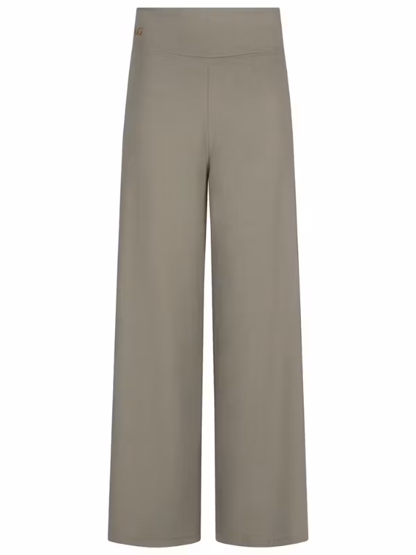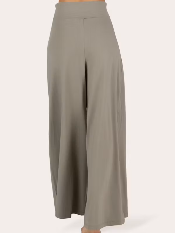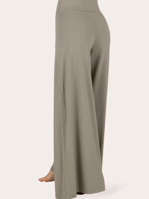 Den breda midjan sitter mjukt och tryggt utan att strama, medan de vida benen skapar en modern, feminin silhuett.