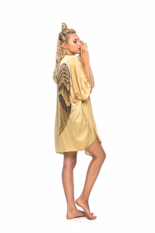 Luxe silk kimono short "Golden goddess" - Warriors of the divine