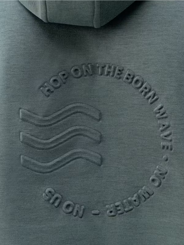 Detaljer: Dubbel huva, justerbar dragsko, präglad design på ryggen