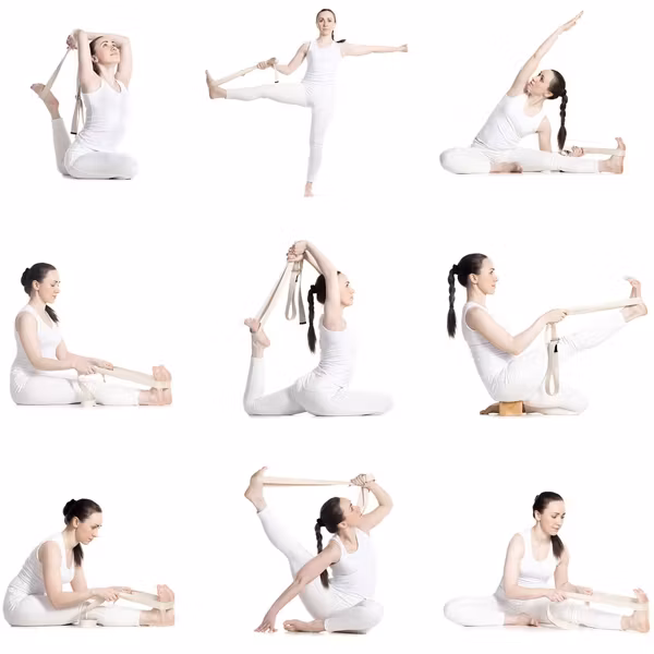 Yogabältet kan också användas när du ska försöka koppla händerna bakom ryggen. Då kan yogabandet fungera som din förlängda arm. Se den sista produktbilden för att bli inspirerad till fler sätt att använda bältet.