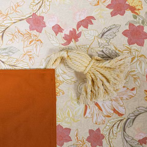 Denna ljuva variant Pastel Forest har ett blommigt mönster i rosa och gult på en creme färgad botten.