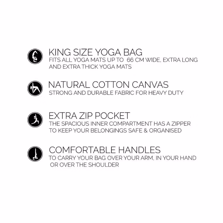 Yogaväskan från Love Generation är en riktigt snygg och rejäl väska i kraftig bomullscanvas. Den är rymlig och passar mattor som är upp till 66cm breda. Den har en dragkedja längs med hela väskan som gör det lätt att få mattan in och ut ur väskan.