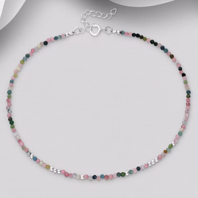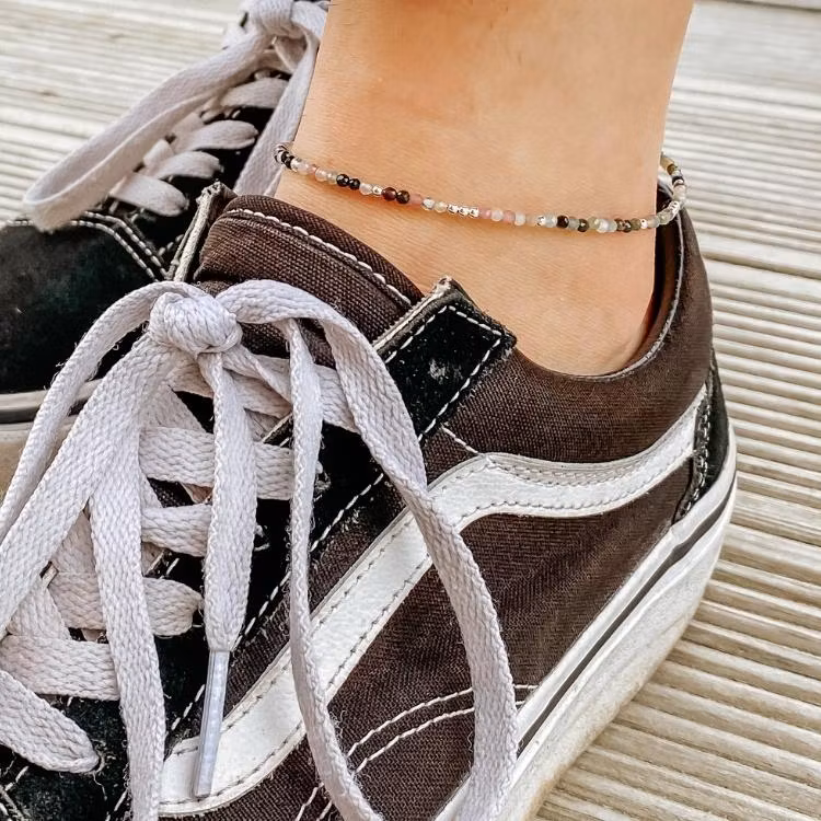 Härlig fotlänk med kristaller av turmalin och silverkulor. Ge en snygg och cool bohemisk look! Snyggt till shortsen eller att bära till din yogaoutfit.
