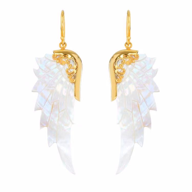 Förälska dig i dessa handsnidade änglavingar från Lalimalu. Här i form av ett par fantastiska örhängen för alla er magiska gudinnor därute.