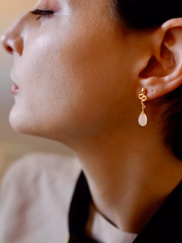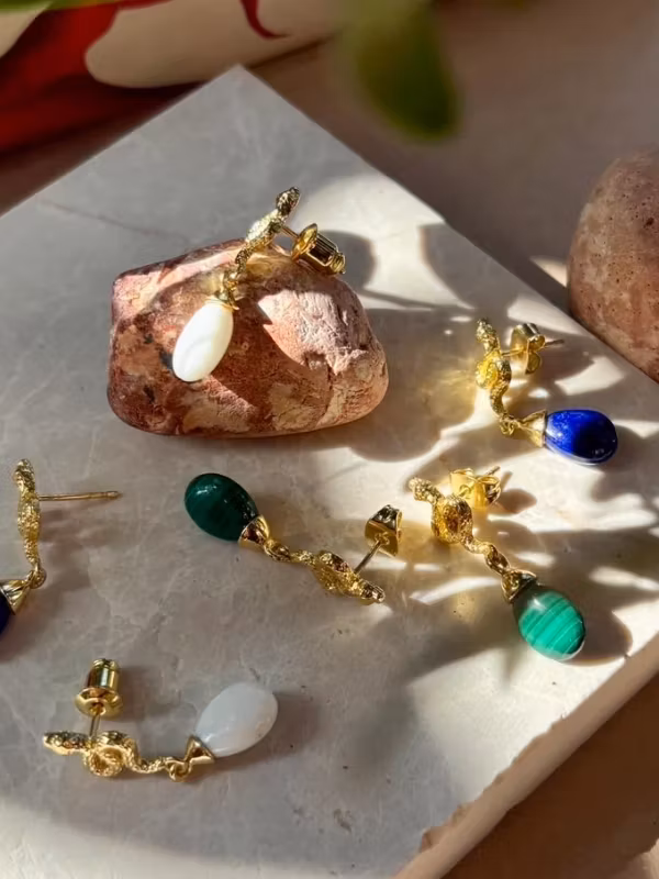 Medusa – en symbol för kvinnlig kraft, skönhet och självrespekt – har inspirerat dessa handgjorda Azuni-örhängen.