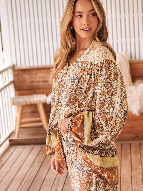 Det australiensiska märket Jaase är kända för sina otroligt lyxiga, boheminspirerade klädkollektioner, med inspiration från hemlandets ljuva livsstil och stränder. Med sina djärva mönster och originella, livfulla tryck, kommer dessa gudomliga plagg garanterat att bli dina nya favoritplagg i garderoben. Allt från böljande långklänningar till blusar med böljande ärmar och volanger.