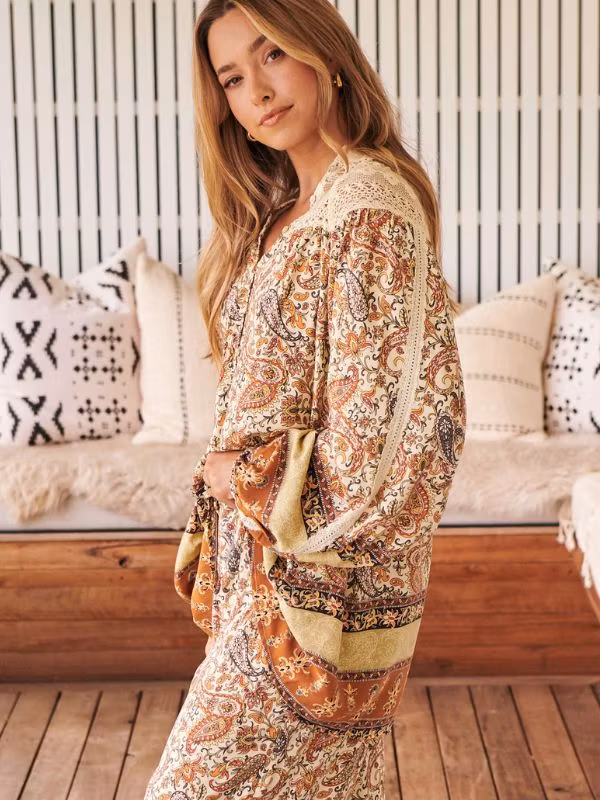 Vår Bohemiska country blus är den perfekta kombinationen av avslappnad elegans och detaljerad skönhet. Med sina häftiga spetsdetaljer längs ärmarna och på dekolletaget för denna blus tankarna till den klassiska countrystilen, vilket ger dig en tidlös och avslappnad look.