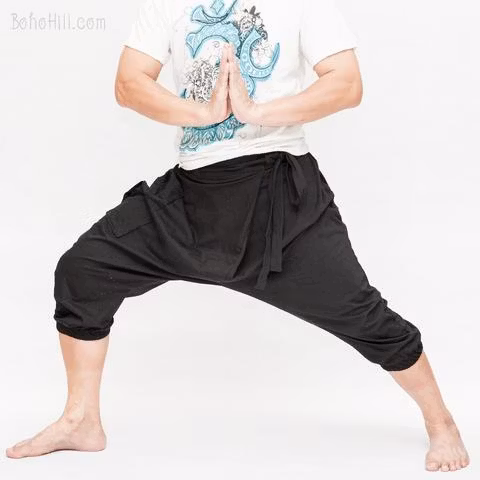 Cool svart haremsbyxa för både tjejer och killar. Bra rörelsefrihet vid din yoga. Härlig att bara strosa rundor i på sommaren eller på semestern. One size innebär ungefär upp till large till kille och ner till small för tjej.