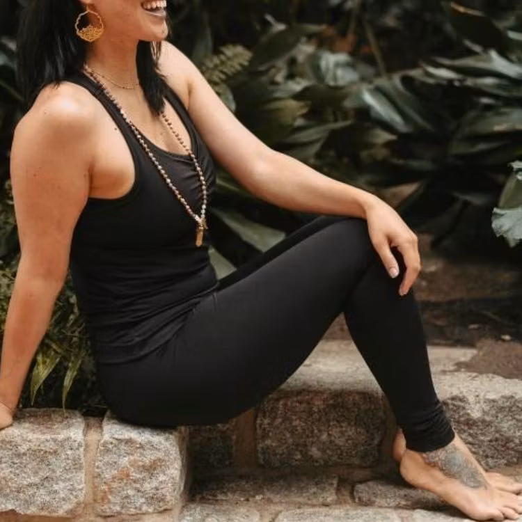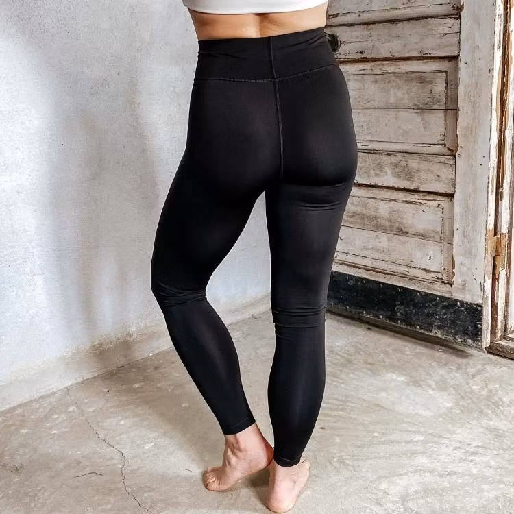 Tack vare det mjuka återvunna tyget, som är både följsamt och stretchigt, kan du utföra de mest krävande yogapositionerna med total rörelsefrihet, utan att tumma på integriteten. De extra höga midjebanden ger dig inte bara en smickrande silhuett, utan också den ultimata komforten när du rör dig i olika positioner. Av samma anledning är de så otroligt följsamma och sköna att ha på sig utanför mattan till vardags, eller varför inte gymmet?