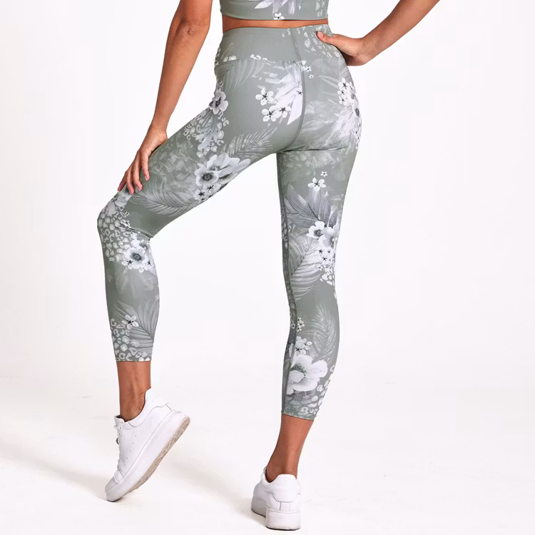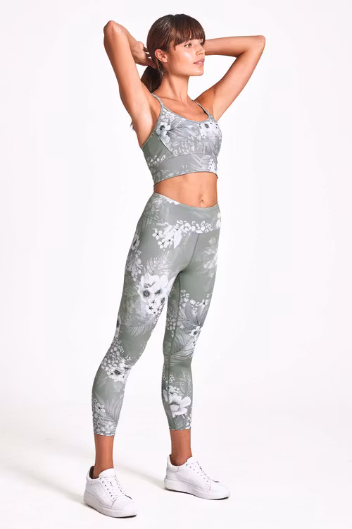 Yogaleggings Surfside från Dharma Bums har skönt material och snyggt mönster. Dessa byxor har en salviagröna botten med vita blommor på. Yogatightsen har hög midja med bred linning som sitter på plats i alla rörelser.