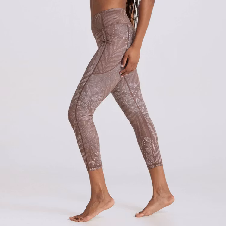 Yogaleggings Wild Fire från Dharma Bums med fantastisk passform och skönt material. Dessa supersnygga leggings har en varm pudrig brun ton med vackra bladmönster som skapar en vacker effekt. Yogatightsen har hög midja med bred linning som sitter på plats i alla rörelser. Speciellt för denna modellen är en diskret och praktisk ficka i sidorna.