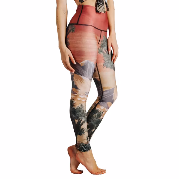 Desert Oasis yogaleggings från Yoga Democracy är ett par läckra yogatights med ett häftigt öknenmönster. De här yogabyxorna har hög midja, men kan också vikas ner till en låg midja utan att förlora sin passform. Materialet håller in och formar kroppen så byxorna ger ett underbart stöd under yogapasset och passar perfekt för alla kroppstyper. De är samtidigt väldigt sköna och känns nästan som ett andra, silkeslent skinn mot huden.