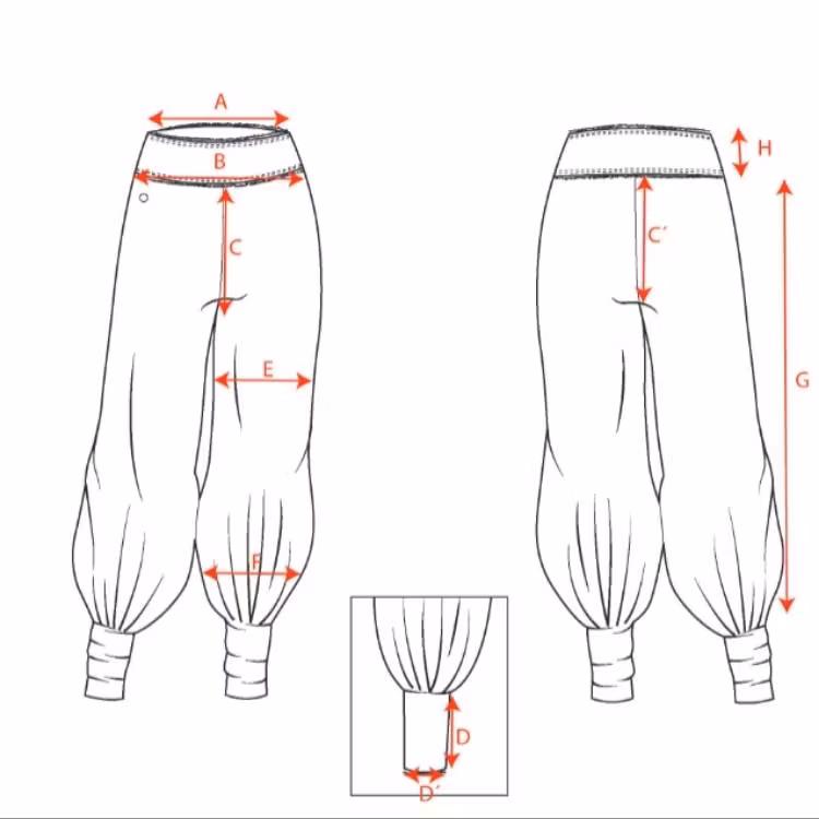 Storlekstips: Vi har testat Aladin-byxorna och Sandra som har storlek Small har följande mått; Midja: 70cm, över höftknölen: 91cm, stuss 98cm. Marika som har storlek Large har följande mått; Midja: 77cm, över höftknölen: 94cm, stuss 104cm. Gällande byxlängden så är mudden lång och mjuk å den kan likaväl sträckas ut som pösas ihop och båda blir snyggt!