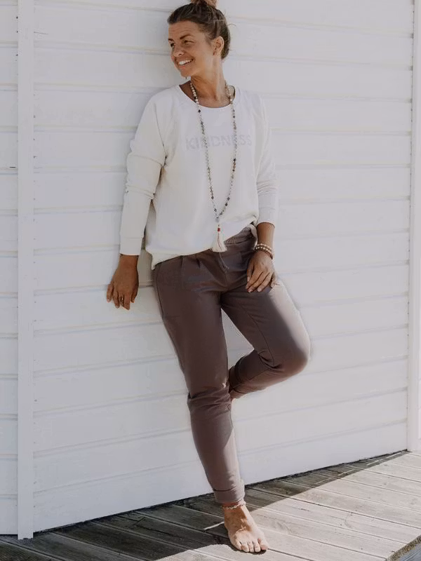 Soft Suited Pants är den ultimata byxan när du vill känna dig klädd och snygg men samtidigt vara avslappnad och bekväm. Färgen PlumTruffle är en mjuk nyans av varm brun som matchar perfekt till många andra färger. Följsamt och mjukt tyg i ekologisk GOTS-certifierad bomull.