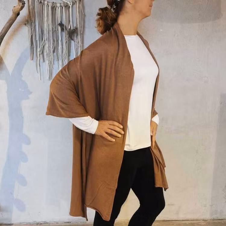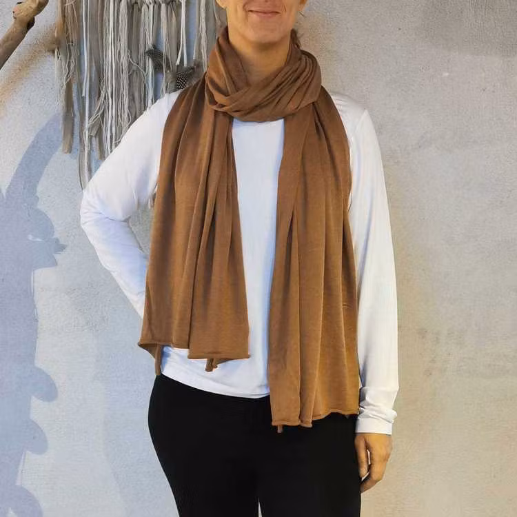 Den snygga och användbara scarfen fungerar lika bra som en klassisk halsduk, men går också att slänga över axlarna och ha som en öppen kofta. Snäll mot huden och mot naturen!