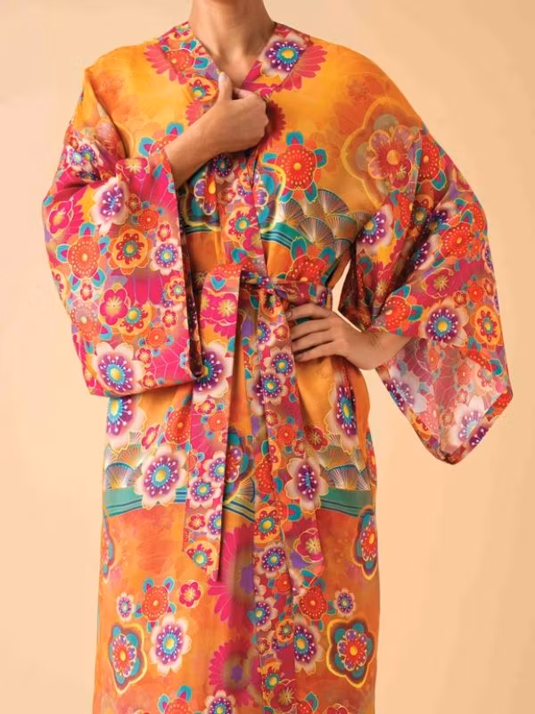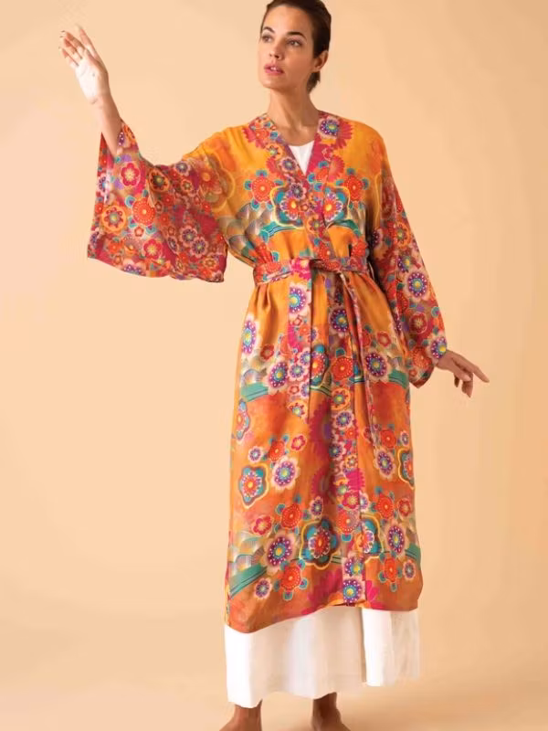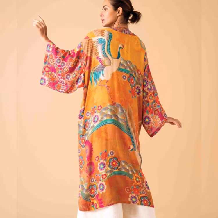Kliv in i en värld av oförglömlig bohemisk elegans och tidlös skönhet med Powder designs förtrollande kimono Golden Cranes. Denna fantastiska härlig kreation där varenda detalj är en fröjd för ögat.