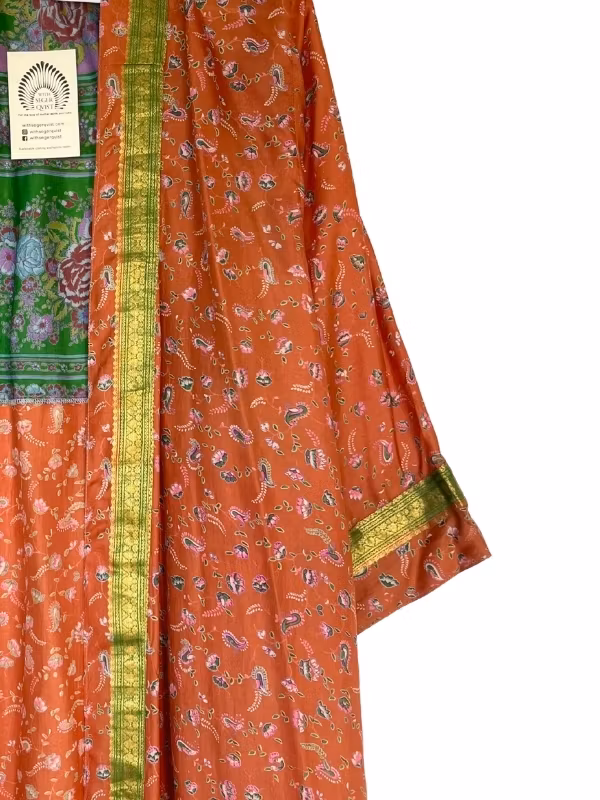 Att välja en kimono i återvunnen sari är inte bara ett stilval – det är också ett steg mot hållbart mode och slow fashion. Genom att återbruka textilier förlängs livscykeln för vackra tyger och varje plagg får nytt liv.