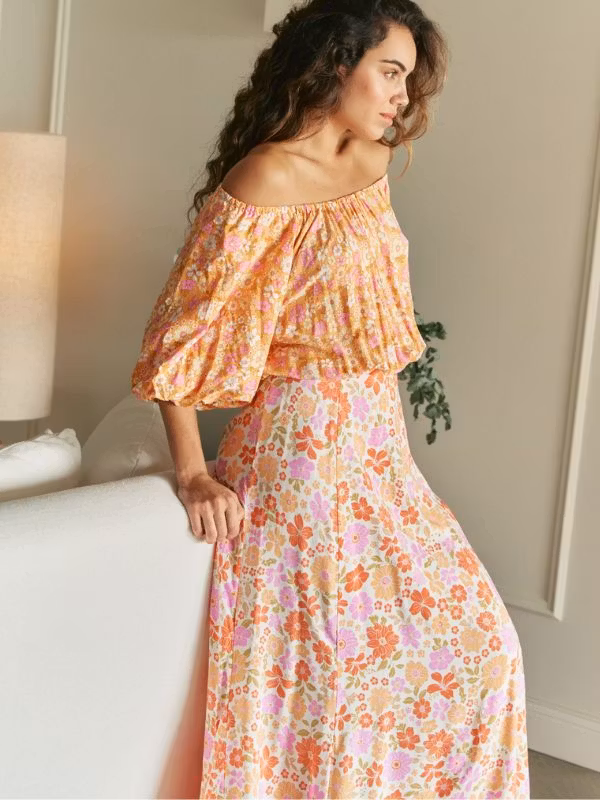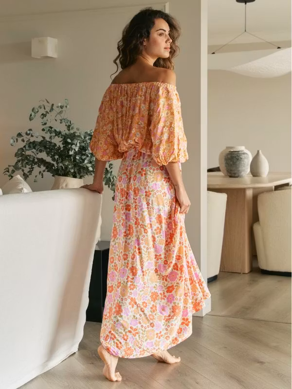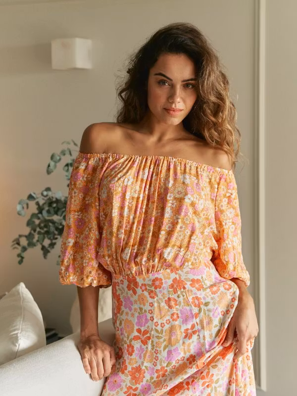Dröm dig bort till soliga stränder och bohemisk 70-tals romantik med denna underbara klänning från det australiensiska märket Jaase! Med sitt flowiga fall och mjuka pastelltoner för tankarna direkt till Bali vibes och avkopplade dagar i solen.