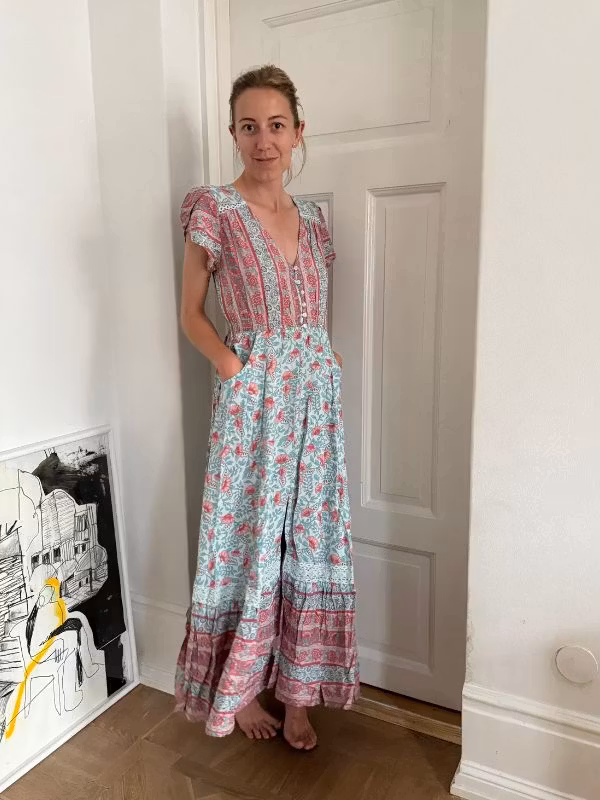 Den här klänningen från Jaase är lika enkel att bära som den är fin att titta på. Ett drömplagg i sommarens alla pastellfärger. Ger sköna vibbar från svensk sommar, semester, sommarvind och strandpromenader – även om du bara ska ner till mataffären.