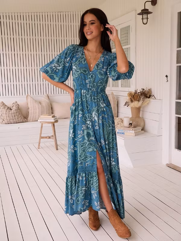 Det australiensiska märket Jaase är kända för sina otroligt lyxiga, boheminspirerade klädkollektioner, med inspiration från hemlandets ljuva livsstil och stränder. Med sina djärva mönster och originella, livfulla tryck, kommer dessa gudomliga plagg garanterat att bli dina nya favoritplagg i garderoben. Allt från böljande långklänningar till blusar med böljande ärmar och volanger.