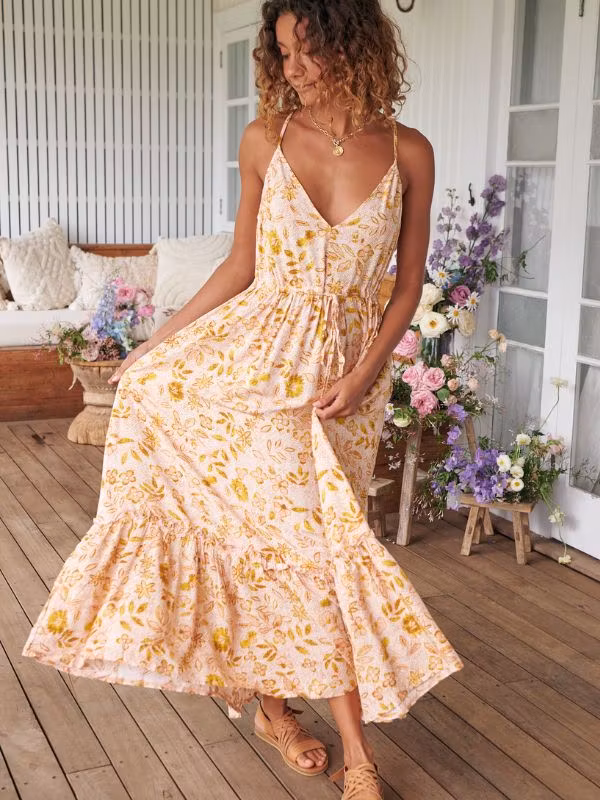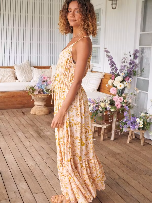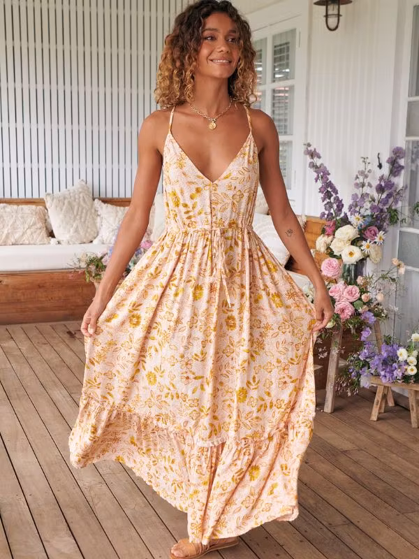 Njut av solen i den här vackra maxi klänning med ett vackert blommigt tryck.