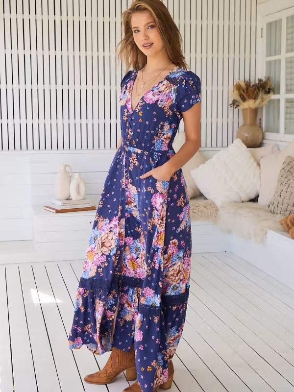 Det australiensiska märket Jaase är kända för sina otroligt lyxiga, boheminspirerade klädkollektioner, med inspiration från hemlandets ljuva livsstil och stränder. Med sina djärva mönster och originella, livfulla tryck, kommer dessa gudomliga plagg garanterat att bli dina nya favoritplagg i garderoben. Allt från böljande långklänningar till blusar med böljande ärmar och volanger.