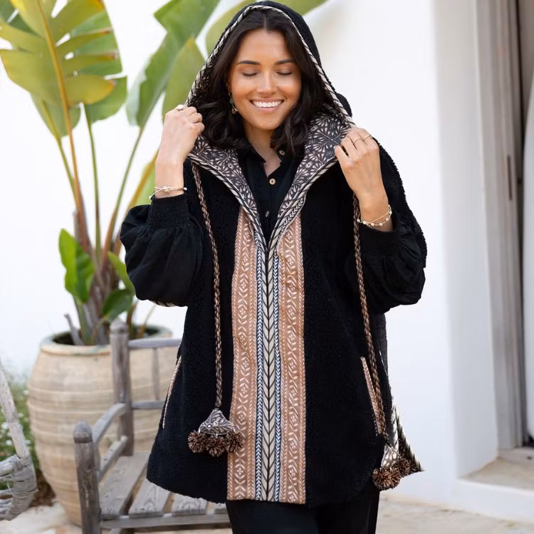 Den vida passformen, de korta ärmarna och huvan skapar en bohemisk siluett som känns både modern och fri. Det här är en jacka för dig som vill bära något med känsla – ett plagg som ger personlighet till även den enklaste outfit.
