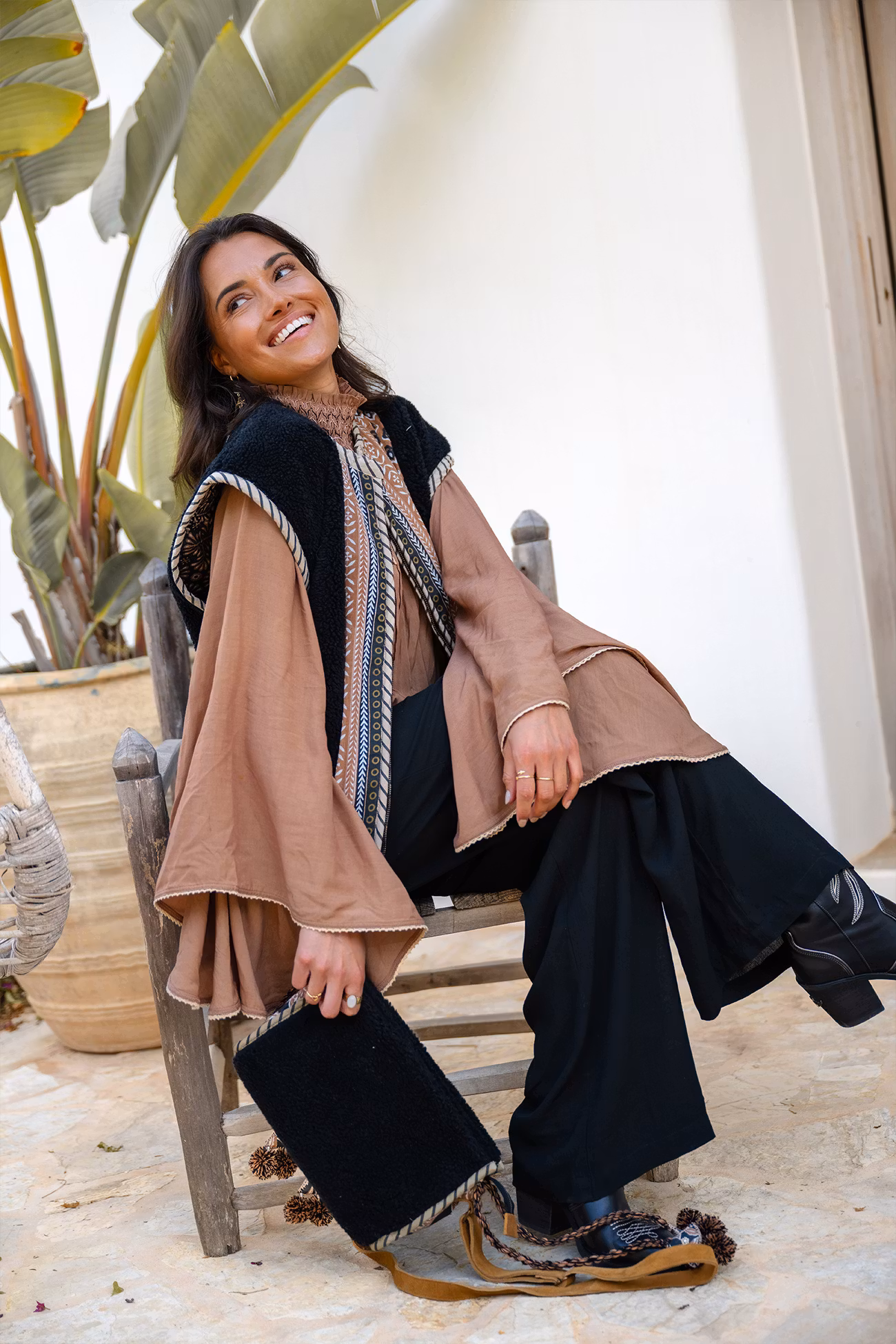 Vinterns mest användbara lager. Osito Nómada Gilet Black är den där västen du tar på dig överallt – till stickade tröjor, hoodies eller över din favoritklänning. Den är mjuk, varm och har den rätta mixen av boho och outdoor – som gjord för dig som vill hålla stilen även när temperaturen faller. Du kan dessutom vända den ut och in och få en helt ny look! - Two in one