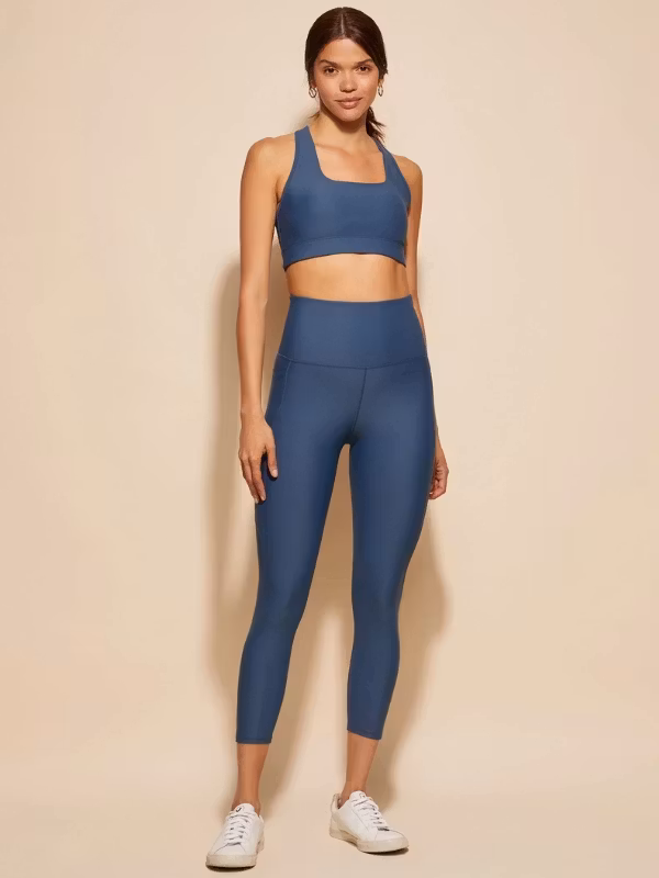 Elements Crop i blå färg är en stilren yogatopp med racerback-design och fyrkantig halsringning – skapad för komfort, rörelsefrihet och stöd. Tillverkad av återvunnen nylon från plastflaskor är den ett hållbart val för din yogapraktik.