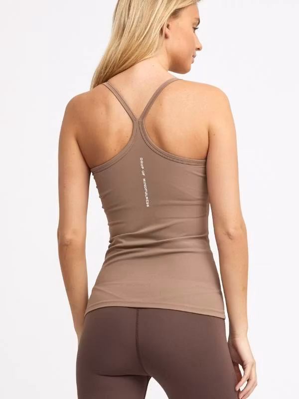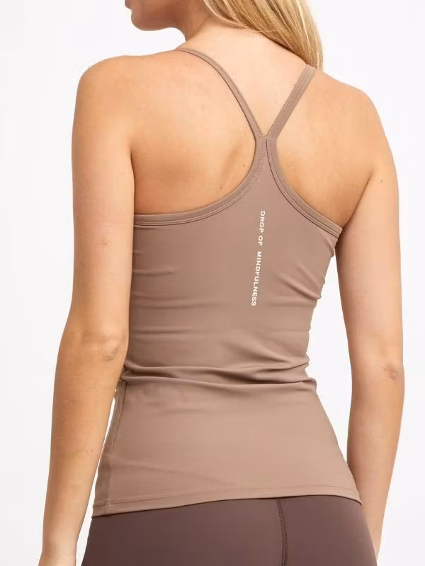 Yogalinne Lena från Drop of Mindfulness. I snygg, matt design som ger en trendig och minimalistisk look! Linnet har en praktisk inbyggd sport-bh med uttagbara inlägg. Yogalinnet har en åtsittande, följsam passform och smala band som går samman på ryggen till en läcker racerback.