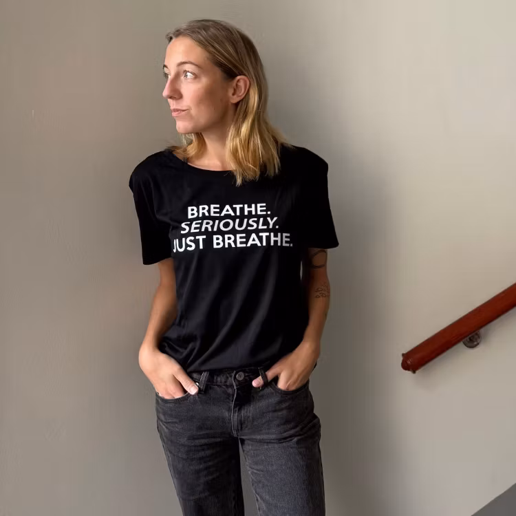 I en värld där allt går i 180 är den här t-shirten din påminnelse att bara… andas. Djupt in, långsamt ut. Enkelt, men så lätt att glömma. Den är tillverkad i 100% ekologisk bomull, lika skön som den är cool. Perfekt för långa dagar, korta pauser och allt däremellan. Släng på den och låt budskapet tala för sig själv – eller för andra som behöver en vänlig påminnelse.