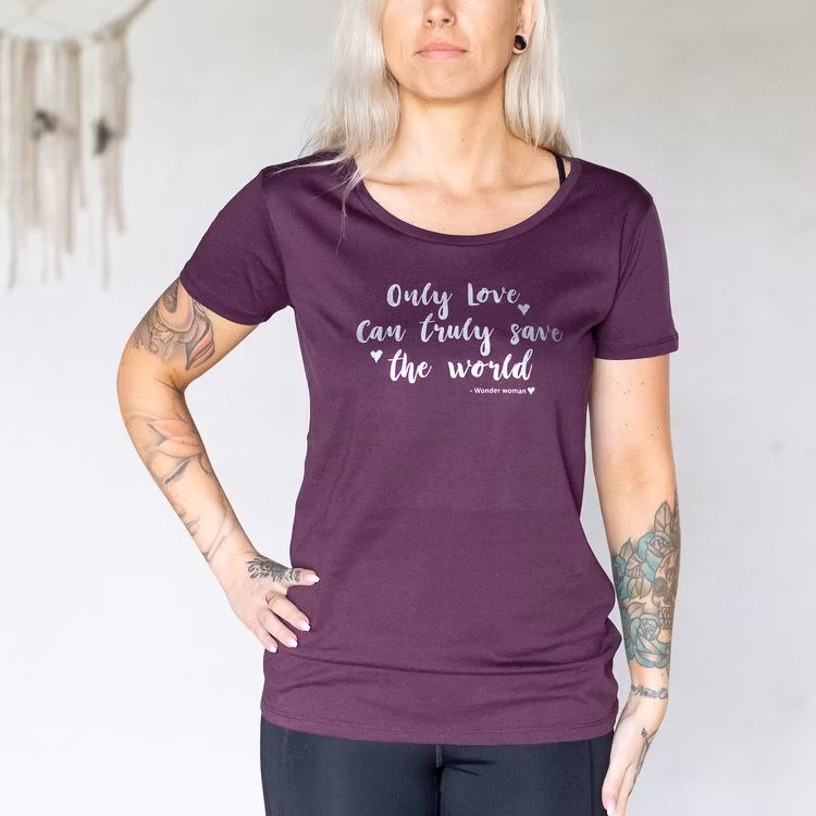 T-shirt "Only love can save the world..." Aubergine - Soul Factory