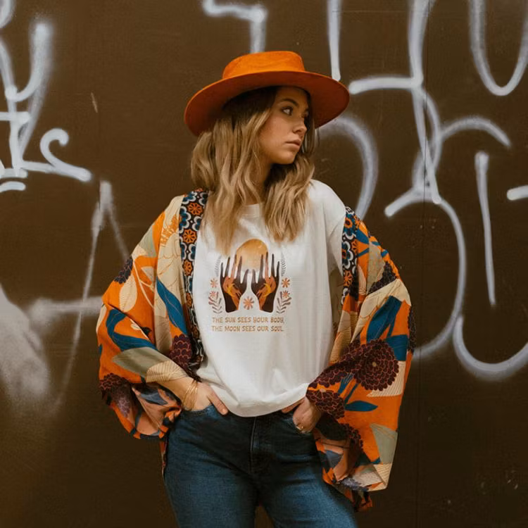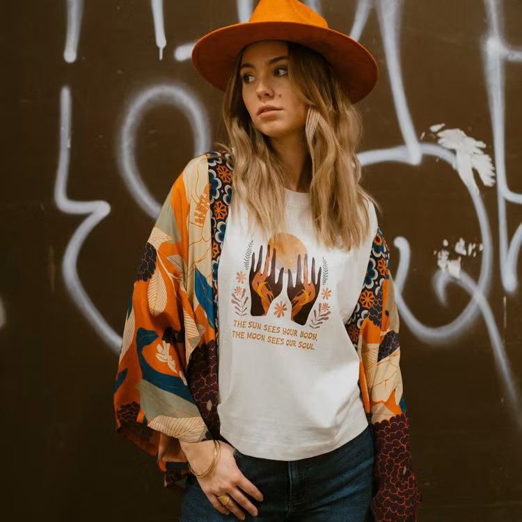Låt den här tröjan vara din påminnelse om att både solen och månen ser dig – både din yttre skönhet och din inre styrka. Med den inspirerande texten 'The sun sees your body. The moon sees your soul.' tryckt på bröstet kommer denna ekologiska tröja från Soul Factory att vara din dagliga påminnelse om din unika skönhet och själ. Avslappnad rak modell med lite längre ärmar ger dig en känsla frihet och något kortare modell ger en touch av lekfullhet. Bär den till vardags med dina favoritjeans och förhöj din look med en kimono och en cool hatt för en stil som är lika unik som du är. Låt tröjan vara din symbol för självkärlek och självuttryckande, oavsett tid på dygnet.