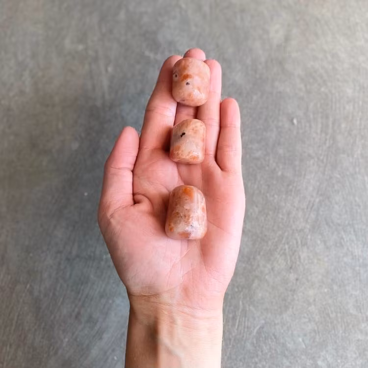 Solstenen har stark koppling till ljuset och solens kraft. Den motverkar dålig energi och sprider ljus och lycka i din tillvaro och ökar din glädje. Denna stenen är perfekt för att boosta ditt självförtroende och för att finna ljuset och glad energi. Dessutom är den väldigt vacker i en färg som skiftar mellan rosa/persika färg.