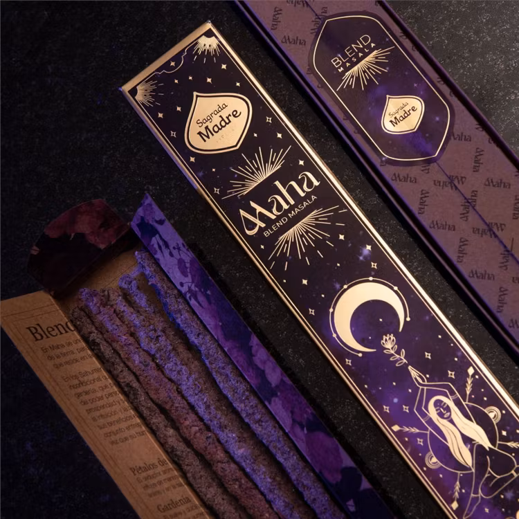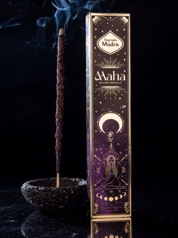 Maha Masala Blend, en lyxig rökelse som hyllar solen, månen och stjärnorna i den universella kärlekens tecken. I en djup sensuell och förförisk doft gömmer sig sockerrörshonung, liljor, rosor, gardenia, mysk och amber.