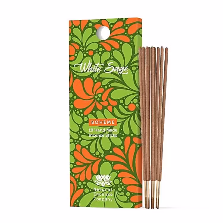 White Sage Boheme-rökelse är handgjord av 100 % naturliga ingredienser och sprider en renande och balanserande doft – perfekt vid meditation, energirening eller när du vill bjuda in ny, frisk energi.