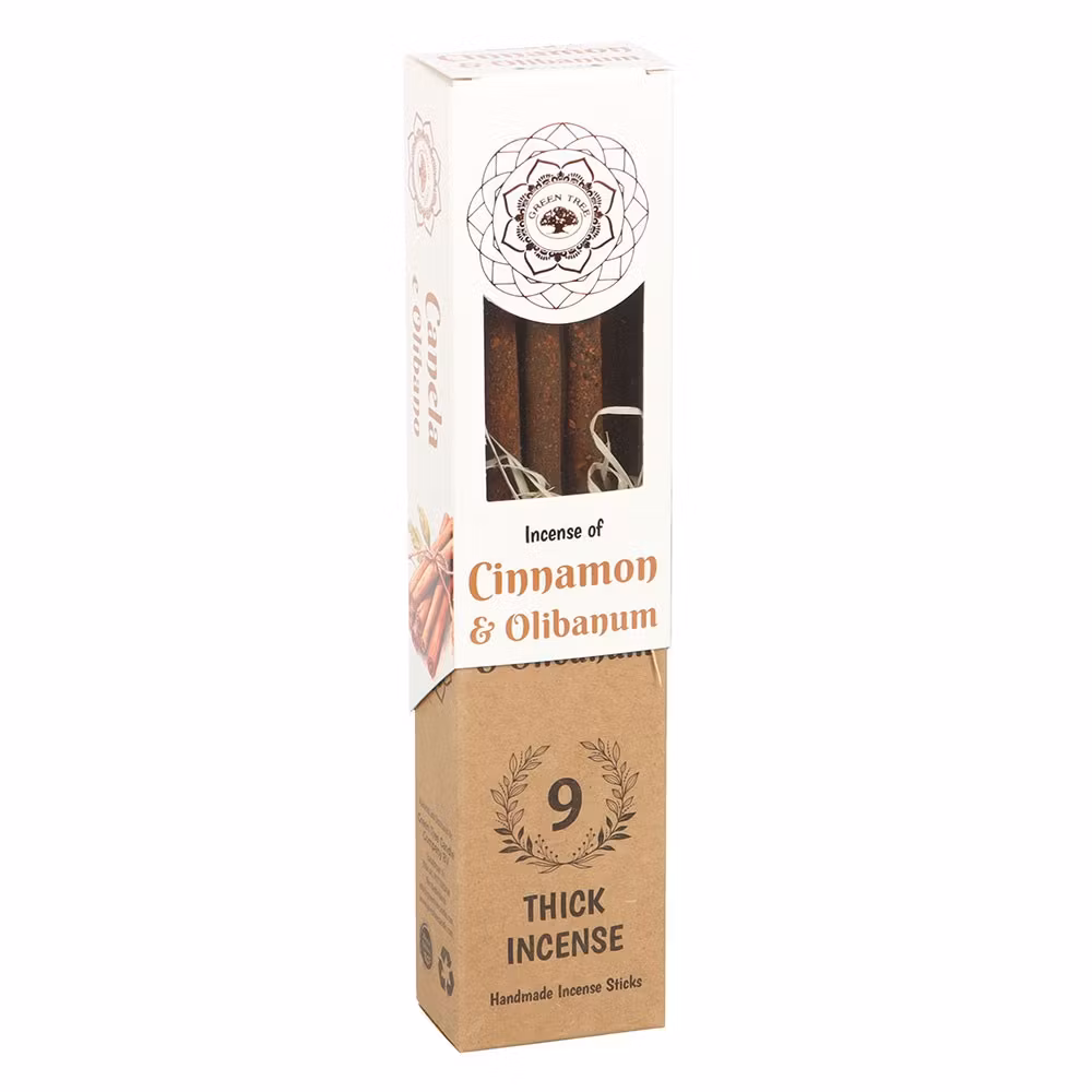 Dessa Cinnamon & Olibanum (frankincense) botaniska rökelsepinnar har tillverkats för att hjälpa till att rena omgivningen samtidigt som det balanserar sinne och själ. Kanelens andliga egenskaper och energier kan hjälpa dig att möta de fysiska och känslomässiga utmaningarna i ditt liv. Varje förpackning innehåller 9 stora rökelsepinnar att använda under yoga, meditation och andliga ritualer.