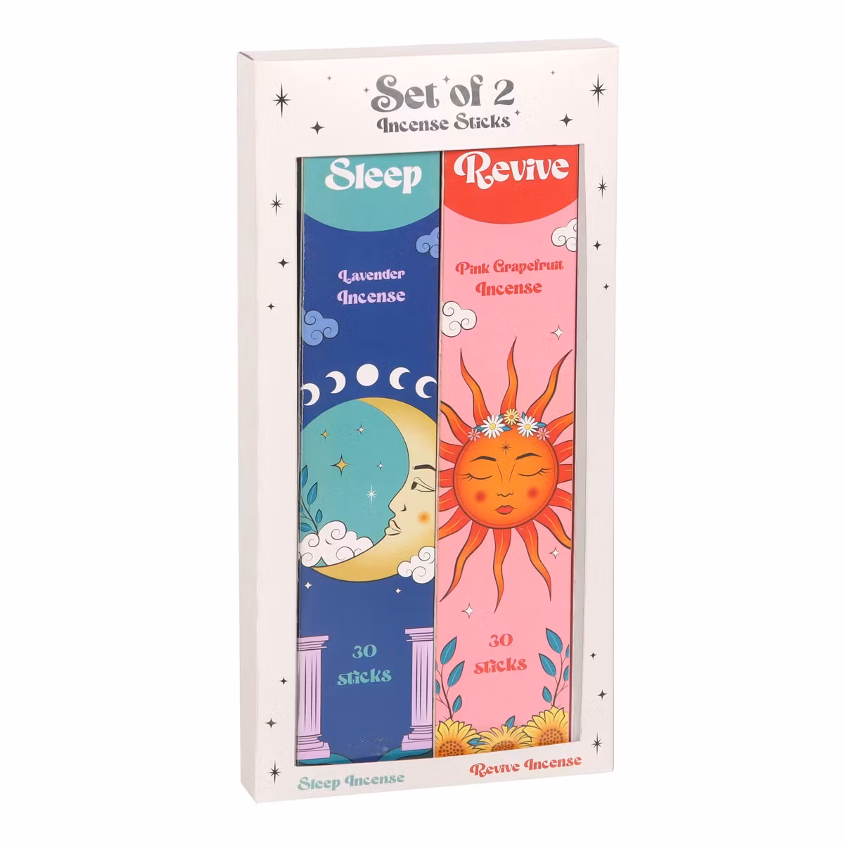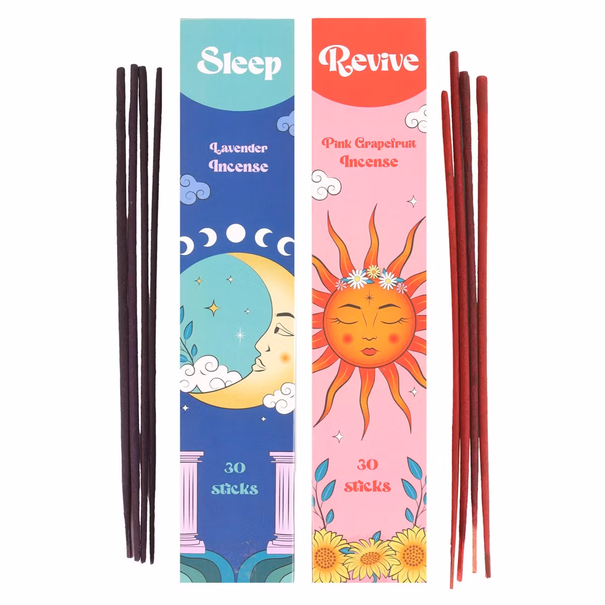 Setet innehåller 30 stickor av Sleep (lavendel) och 30 stickor av Revive (rosa grapefrukt) – en måste-ha-upplevelse för alla som vill skapa sitt eget magiska utrymme.