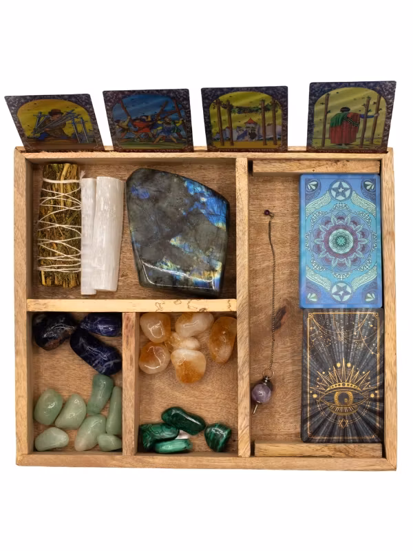 Trälåda med 4 fack till spirituell kortlek