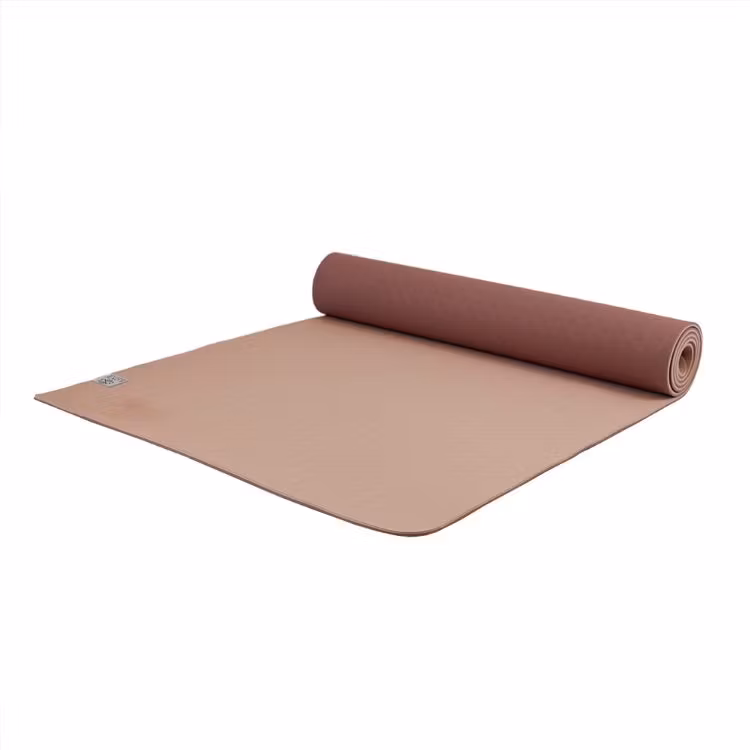 Brun/beige eko yogamatta tillverkad av TPE, väldigt mjuk och stötdämpande. Yogamattan har ett mjukt toppskikt med struktur för komfort och bra gepp. Denna yogamattan är biologiskt nedbrytbar.