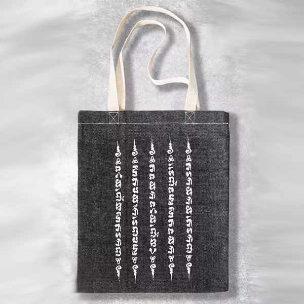 Snygg väska med tryck i tjockt canvas tyg. Perfekt att lägga sina saker i på till yogan, stranden, affären mm. Färgen är grått med vitt tryck. Inga gifter har använts vid tryckning.